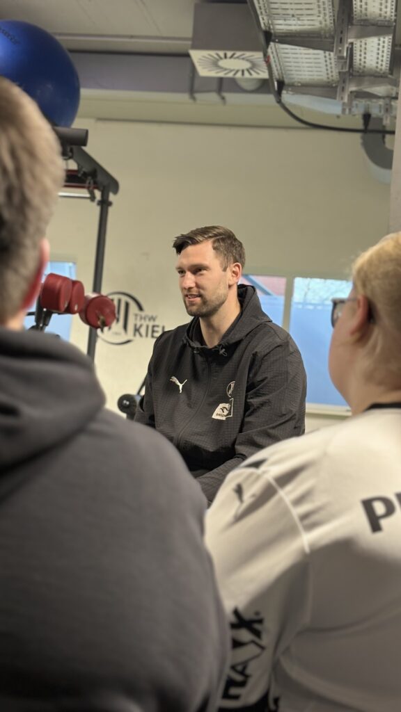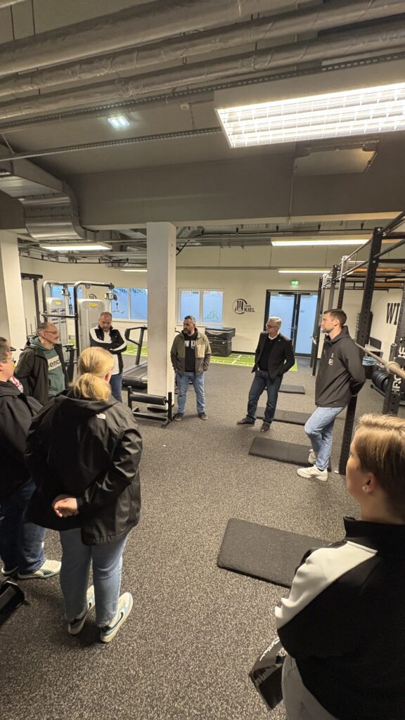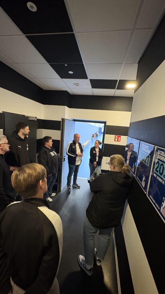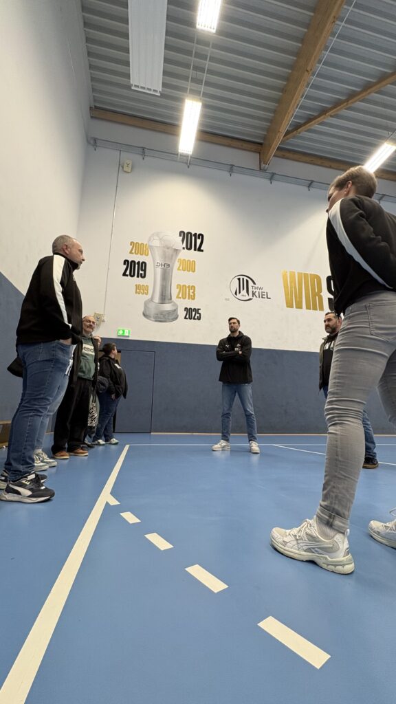 Fünf Gewinner:innen bekamen eine exklusive Führung durch die Räumlichkeiten im THW Trainingszentrum in Altenholz. Dazu gab es jede Menge interessanter Fakten: Wusstet ihr beispielsweise, dass der Boden in der Halle der gleiche ist wie in der Merkur Ostseehalle? Ebenso verhält es sich mit der Beleuchtung; beides soll für ideale Trainingsbedingungen sorgen. Und es gibt einen Gang in der Halle, in dem die Namen der ehemaligen THW-Spieler stehen, also quasi eine Hall-of-Fame im THW-Style für alle und insbesondere auch für die, die es nicht unter die Hallendecke geschafft haben.