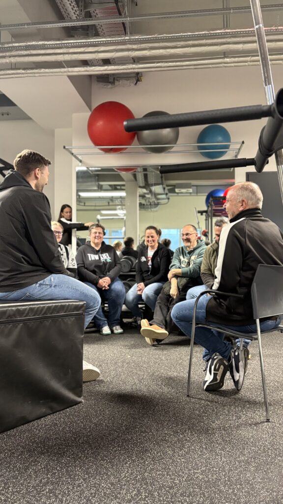 Harald Reinkind erzählte viel vom Ablauf hinter den Kulissen, zum Beispiel bei Auswärtsfahrten. Da sollte man lieber pünktlich sein, denn bei Verspätungen müsse man in die Mannschaftskasse einzahlen. Spannend waren auch die Einblicke in die Aktivitäten der Spieler im Mannschaftsbus. Hier war so ungefähr alles dabei, was man auf einer Busfahrt machen kann. Harald hat die Zeit z. B. oft zum Lernen genutzt, denn er hat seinen Master in BWL und VWL neben seiner Profi-Karriere beim THW gemacht. Insbesondere die Prüfungen waren eine Herausforderung, denn Trainingsfrei oder Spielfrei gab es dafür natürlich nicht.